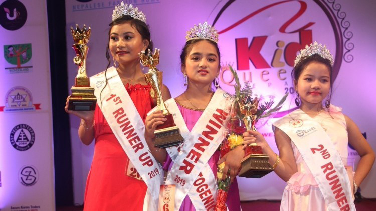 काठमाडौं । नेप्लीज फेसन होमले आयोजना गरेको ‘किड क्विन नेपाल–२०१९’ को उपाधि रशु पन्तले जितेकी छिन् । २१ जना प्रतियोगीहरुले भाग लिएको उक्त प्रतियोगितामा रशुले नगद १० हजार रुपैयाँ राशीको उक्त उपाधि जितेकी हुन् । उपाधिसँगै उनले आकर्षक मुकुटका साथमा विभिन्न उपहारसमेत प्राप्त गरिन् । काठमाडौं महानगरपालिकाका मेयर विद्यासुन्दर शाक्यको प्रमुख आतिथ्यमा सम्पन्न १७ औं संस्करणको उक्त प्रतियोगितामा रोशिका लामाले फस्ट रनर्सअपको उपाधि जितिन् भने कृष्मा ढुंगनाले सेकेन्ड रनर्सअपको उपाधि जित्न सफल भइन् ।