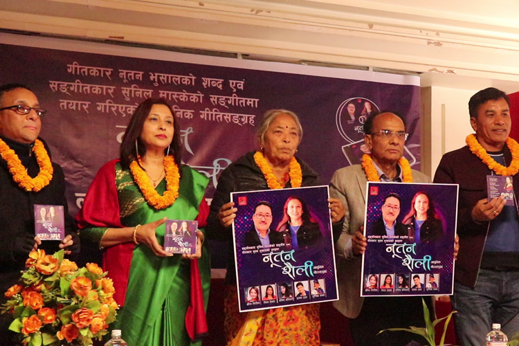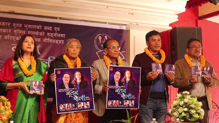 काठमाडौं । गीतकार नूतन भूसालको चौंथो कृति ‘नूतन शैली’ सार्वजनिक भएको छ । राजधानीको बागबजार स्थित हेलो क्याफेमा एक कार्यक्रमको आयोजना गरी उक्त एल्बमलाई सार्वजनिक गरिएको हो । वरिष्ठ गीतकार प्रा.डा. कृष्णहरि बरालको प्रमुख आतिथ्यतामा ‘नूतन शैली’को सार्वजनिक गरिएको हो । शुभकामना मिडिया सोलुशनले आयोजना गरेको उक्त कार्यक्रममा गीतकार भुसालकी आमा रामकुमारी भुसालको सभापतित्वमा रहेको थियो । उक्त कार्यक्रममा गीतकार डा.राजुबाबु श्रेष्ठ, संगीतकार राजु सिंह विशेष अतिथिका रुपमा रहेका थिए ।