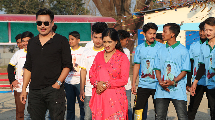 गीतमा फिल्मका प्रमुख कलाकारहरु कुन्जना घिमिरे, सन्दिप क्षेत्री, विल्सनविक्रम राई फिचर्ड छन् । भिडियो फिल्मका लेखक दीपक आचार्यले निर्देशन गरेका छन् । भिडियोमा राजनितिक पार्टीको प्रचार तथा दुईपार्टी बिचको झैझगडालाई देखाइएको छ । फिल्ममा शंकर थापा स्माइल, राजनराज सिवाकोटी र कालीप्रसाद बासकोटाको संगीत छ ।