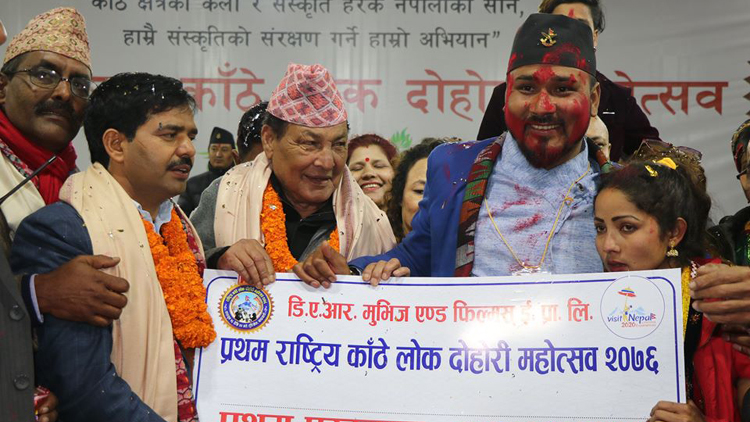 काठमाडौं । प्रथम राष्ट्रिय काठे लोक दोहोरी प्रतियोगिताको उपाधी सिन्धुपाल्चोकका प्रदिप रोक्का र कल्पना दाहालको जोडीले जितेको छ । काँठ क्षेत्रको कला र संस्कृति हरेक नेपालीको सान, हाम्रै संस्कृतिको संरक्षण गर्ने हाम्रो अभियान’ भन्ने नाराका साथ डिएआर मुभिजको आयोजनामा काठमाडौंको टुँडिखेलमा फाल्गुण १६ गते देखि २० गतेसम्म भएको ‘प्रथम राष्ट्रिय काँठे लोक दोहोरी महोत्सव’मा गोरखाकी बबिता बाँनिया (जेरी) र विजय बाँनियाको जोडीले फाईनलमा प्रदीप र कल्पनाको जोडीसँग प्रतिष्पर्धी थियो ।