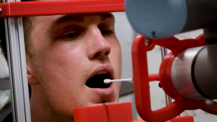डेनमार्कका शोधकर्ताले तयार पारेको यो रोबोटले जूनबाटका काम शुरु गर्नेछ । यो रोबोट घडी प्रिन्टरबाट तयार पारिएको हो । कोरोना टेस्टमा यसको काम आम मानिसले गर्ने जस्तै हो । यो रोबोट आफ्नो अगाडि बसेका शंकास्पद व्यक्तिको मुखमा स्वाब छिराउँछ । त्यहाँबाट नमूना लिएर रोबोटले स्वाबलाई टेस्ट ट्युबमा राख्दछ र त्यसको बिर्को बन्द गरिदिन्छ । यो रोबोट बनाउन थियुसियुस रजीत सवारीमुथुसहित १० सदस्यीय समूह थियो ।