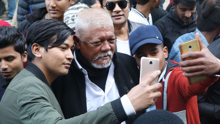 काठमाडौं । शनिवार राजधानीका फिल्म हलमा एउटा अनौठो दृश्य देखियो । फिल्म हेर्न आएका दर्शकहरु शेरबहादुरसँग धमाधम सेल्फी लिइरहेका थिए । ती शेरबहादुर नेपालका प्रधानमन्त्री शेरबहादुर देउवा नभई फिल्म ‘शेरबहादुर’का प्रमुख पात्र सुनिल थापा थिए । सुनिलले शुक्रबारबाट रिलिज फिल्म ‘शेरबहादुर’मा शीर्ष चरित्रमा अभिनय गरेका छन् ।