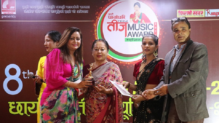 काठमाडौं । आठौं छायाँछवी तीज म्युजिक अवार्ड सम्पन्न भएको छ । राजधानीमा आयोजित विशेष समारोहका बिच २९ विधामा उत्कृष्ट श्रष्टा सर्जकलाई अवार्ड प्रदान गरिएको छ । नेपाली फिल्मकी प्रथम नेपाली नायिका भुवनचन्दको प्रमुख आतिथ्यतामा भएको कार्यक्रममा गायिका देविका वन्दना, कलाकार तथा निर्देशक दीपाश्री निरौला, कलाकार तथा निर्देशक मोहन निरौला, निर्माता प्रदिप उदय, चलचित्र पत्रकार संघका पूर्वउपाध्यक्ष बिष्णुप्रसाद सुबेदी, कलाकार रोशनी केसी, नायिका अनामिका चौलागाईलगायतको उपस्थिति थियो ।