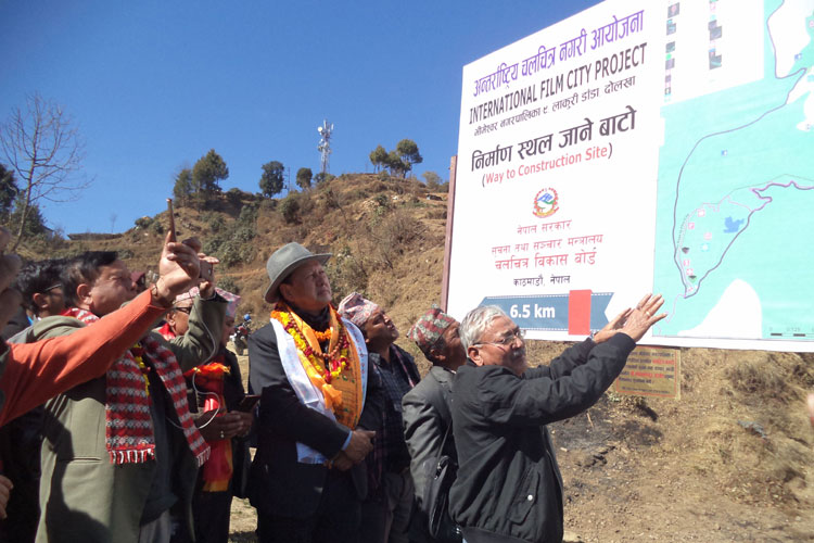 कलाकार मदनदास श्रेष्ठले हिउँदमा प्रायः हिउँ पर्ने यो ठाउँमा चलचित्र नगरी निर्माणका लागि निरन्तर प्रयास जारी राखेपछि सबै प्रक्रिया पूरा गरेर बिहीबार अन्तर्राष्ट्रिय चलचित्र नगरीको शिलान्यास भयो । शिलान्यास गर्दै पूर्वसूचना तथा सञ्चारमन्त्री मोहनबहादुर बस्नेतले मृग, घोरल, कस्तुरीलगायतका जंगली जनावर दौडने यो वनमा बन्ने चलचित्र नगरी अन्तर्राष्ट्रिय जगतमै आकर्षक थलो बन्ने विश्वास व्यक्त गरे । ‘चलचित्र नगरी निर्माणका लागि पोखरा, बारालगायत स्थानबाट पनि प्रस्ताव आएको थियो, योभन्दा उपयुक्त स्थान अन्यत्र देखिएन, वरपर प्राकृतिक, धार्मिक एवं पर्यटकीयस्थल रहेकाले यो स्थल उपयुक्त छ, चलचित्र क्षेत्रलाई उद्योगका रुपमा व्यवस्थित गर्न पनि यो नगरीले महत्वपूर्ण योगदान गर्नेछ, म पदमा रहे पनि नरहे पनि नगरी निर्माणका लागि सधैँ व्यक्तिगत तवरले सहयोग गर्नेछु’, उनले भने ।