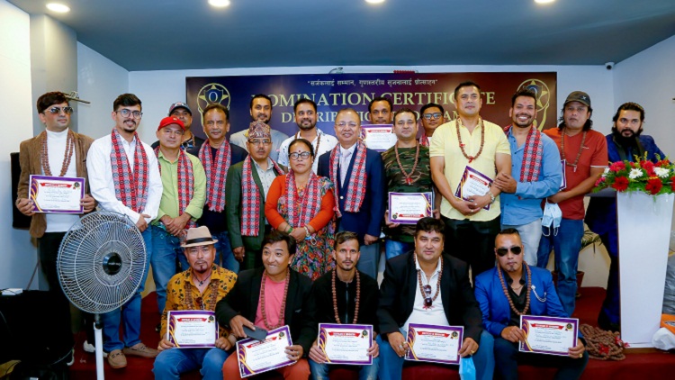 चलचित्र विकास बोर्डका अध्यक्ष दयाराम दाहाल, पूर्व प्रधानसेनापति राजेन्द्र क्षेत्री, चलचित्र निर्माता, निर्देशक नरेश पौड्याल, गायक शिव परियारलगायतले अवार्डको मनोनयनमा परेकालाई प्रमाणपत्र प्रदान गरे ।