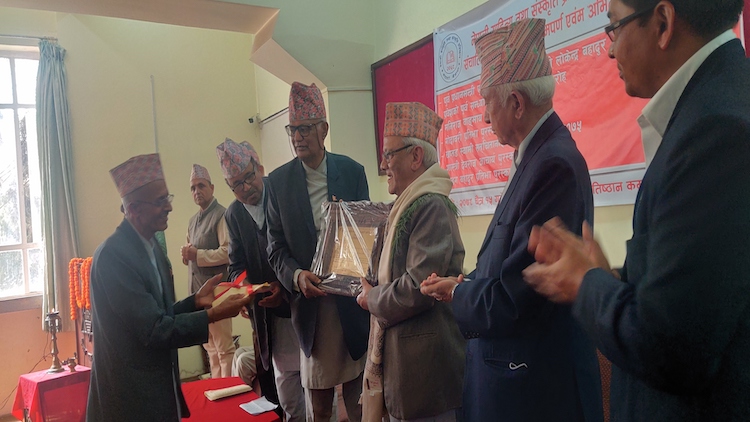 काठमाडौं । नेपाली साहित्य तथा संस्कृति प्रतिष्ठान गोदावरी कैलालीले विभिन्न पूर्व प्रधानमन्त्री तथा साहित्यकार लोकेन्द्रबहादुर चन्दलाई ८४ औं उमेरको उपलक्ष्यमा अभिनन्दन र पुरस्कार प्रदान गरेको छ ।