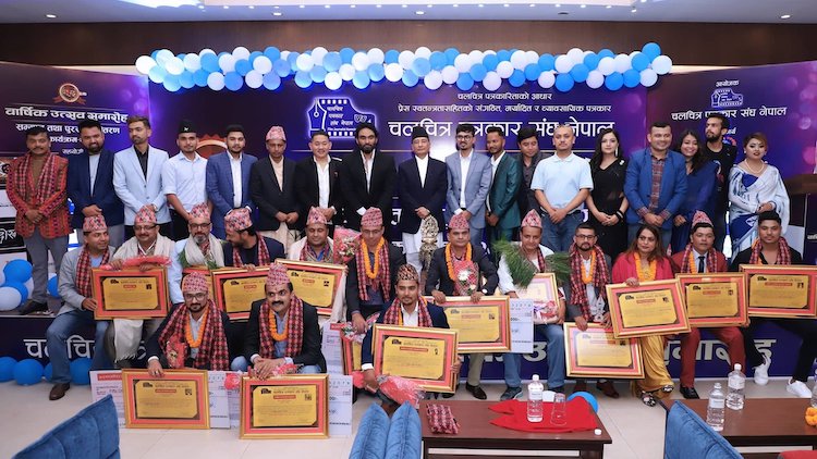 काठमाडौं । चलचित्र पत्रकारहरुको छाता संस्था चलचित्र पत्रकार संघ नेपालले आफ्नो २३औं वार्षिक उत्सवको अवसर पारेर तीन वर्षको सम्मान तथा पुरस्कार एकसाथ वितरण गरेको छ । शनिवार काठमाडौंमा आयोजित एक कार्यक्रममा सञ्चार तथा सूचना प्रविधिमन्त्री ज्ञानेन्द्रबहादुर कार्कीले १६ जना चलचित्र पत्रकारलाई सम्मान तथा पुरस्कार वितरण गरेका हुन् ।
