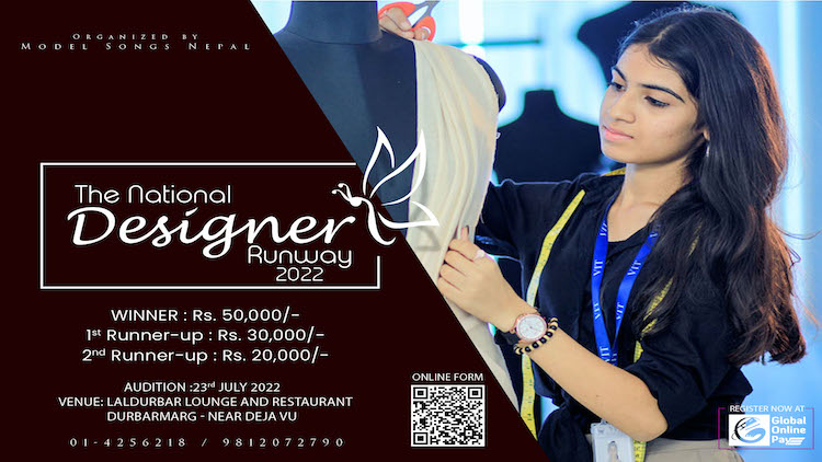 काठमाडौं । मोडल सङ्स नेपालको आयोजनामा नेपालमै पहिलोपटक राष्ट्रियस्तरको फेशन डिजाइनर लक्षित ‘द नेशनल डिजाइनर रनवे’ हुने भएको छ । बिहीबार एक विज्ञप्ती जारी गर्दै आयोजक मोडल सङ्स नेपालले ‘द नेशनल डिजाईनर रनवे’ को आवेदन फारम खुल्ला भएको जानकारी दिएको हो ।