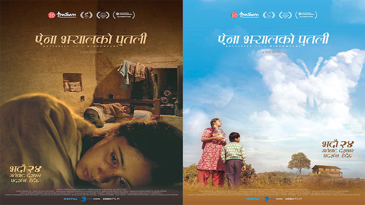 काठमाडौं । सुजित बिडारी निर्देशित फिल्म ‘ऐना झ्यालको पुतली’ भदौ २४ मा सार्वजनिक प्रदर्शनमा आउने भएको छ । निर्माण टिमले शुक्रबार दुई पोस्टर सार्वजनिक गर्दै प्रदर्शन मिति सार्वजनिक गरेको हो । ‘ऐना झ्यालको पुतली’ दक्षिण कोरियाको बुसान इन्टरनेसनल फिल्म फेस्टिभल, बंगलादेशको ढाका इन्टरनेसनल फिल्म फेस्टिभल, चेक रिपब्लिकको जलिन फिल्म फेस्टिभल र अष्ट्रेलियाको एसिया प्यासिफिक स्क्रिन अवार्ड जस्ता विश्वका प्रतिष्ठित फिल्म फेस्टिभलमा छनोट भइसकेको फिल्म हो ।