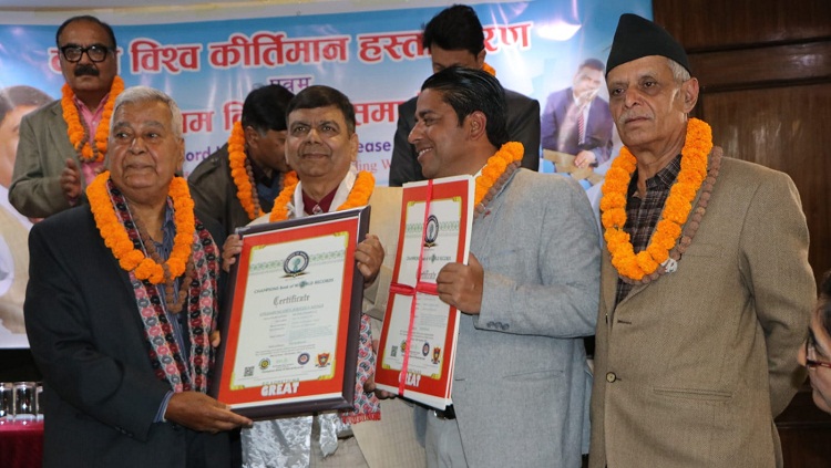 उक्त कीर्तिमान उनलाई विश्व रेकर्ड प्रदान गर्ने बिभिन्न ११ संस्थाले प्रदान गरेको हो ।