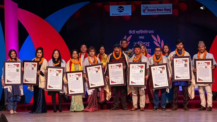 काठमाडौं । नेपाली चलचित्र, गीतसंगीत, सौन्दर्यकला तथा समाजसेवामा निरन्तर योगदान दिएका विभिन्न श्रष्टाहरु काठमाडौंमा एक समारोहबीच सम्मानित भएका छन् । विलक्षण क्रियसन तथा ब्युटी न्युज नेपालको छैटौं वार्षिकोत्सबको अबसरमा काठमाडौंको नाचघरमा आयोजित ‘राष्ट्रिय विलक्षण प्रतिभा सम्मान–२०७९’बाट उनीहरु सम्मानित भएका हुन् ।