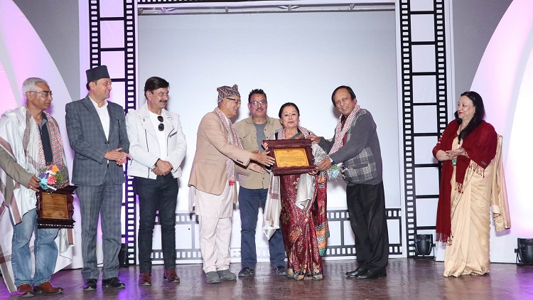काठमाडौं । नेपालकी प्रथम नायिका भुवन चन्द ‘सोसल मिडिया कलाकर्मी सम्मान २०७९’ बाट सम्मानित भएकी छन् । आइतबार चलचित्र विकास बोर्डमा आयोजित ‘सोसियल मिडिया फिल्म अवार्ड २०७८’ मा उनलाईशो सम्मान प्रदान गरिएको हो । कार्यक्रममा चलचित्र बिमस बोर्डका अध्यक्ष भुवन केसी, बरिष्ठ चलचित्रकर्मी यादव खरेल, चलचित्र निर्माता संघका अध्यक्ष नवल खड्का, प्रेस काउन्सिल नेपालका अध्यक्ष बालकृष्ण बस्नेत, नेपाल टेलिभिजनका कार्यकारी अध्यक्ष समीरजंग शाह, नेपाल टेलिभिजनकै महाप्रबन्धक फूलमान बल तामाङ लगायतले उनलाई खादा, फूलगुत्था र सम्मान पत्रले सम्मानित गरे ।