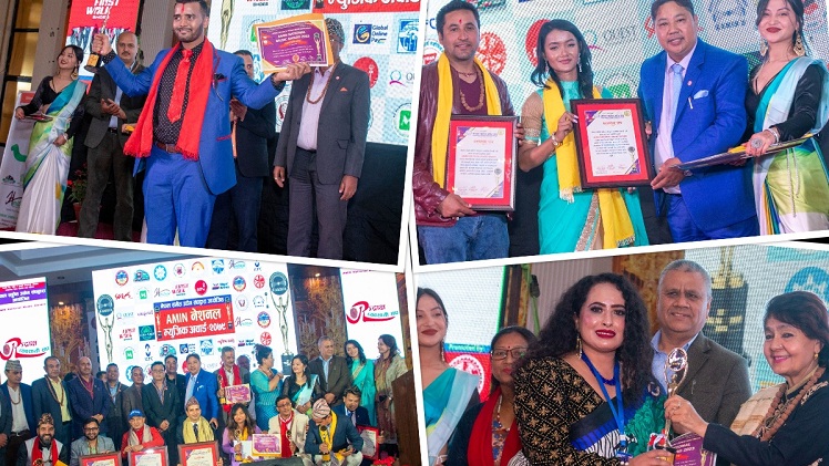 काठमाडौं । नेपाल संगीत उद्योग संघको आयोजनामा आइतबार साँझ राजधानीमा दोस्रो संस्करणको ‘अमिन राष्ट्रिय म्यूजिक अवार्ड २०७९’ सम्पन्न भएको छ । संस्कृति तथा पर्यटनमन्त्री सुदन किराँतीको प्रमुख आतिथ्यतामा भएको कार्यक्रममा कार्यक्रममा डा. भोला रिजाल र संगीतकार सुरेश अधिकारीलाई ‘स्रष्टा सम्मान’, अभिनेता शिव श्रेष्ठलाई ‘कलाकारिता सम्मान’, पत्रकारद्वय तुलसी गिरी ‘भावुक’ र सुमन पण्डितलाई ‘पत्रकारिता सम्मान’, हेमराज ढकाल, सुमित केडिया, भक्त हमाल, नरेशलाल श्रेष्ठ, नानीराज घिमिरे र रविन श्रेष्ठलाई ‘व्यावसायिक सम्मान’ तथा म्यूजिक नेपाललाई ‘उत्कृष्ट म्यूजिक कम्पनी’को सम्मान गरिएको थियो ।