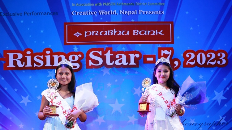 काठमाडौं । क्रियटीभ वल्र्ड नेपालको आयोजनामा सम्पन्न ‘सातौं प्रभु बैंक राइजिङ स्टार’ को उपाधि जुनियर क्याटगोरीबाट इपिएस स्कुल, मीन भवनमा कक्षा ५ मा अध्ययनरत कृपा गौतम र सिनियर क्याटगोरीबाट नेशनल एकेडेमी, शंखमुलमा कक्षा ७ मा अध्ययनरत सोनु महताराले जितेका छन् । विजेताद्वयले जनही नगद ५० हजार रुपैंयाँसहितसहित अवार्ड, क्राउन र विभिन्न उपहारहरु प्राप्त गरे । दुवैले मोस्ट ट्यालेन्टेड अवार्डसमेत हात पारे ।