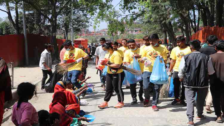 पशुपतिनाथमा वेलकम टु हेम्जाकोटको फलफूल वितरण र सरसफाई