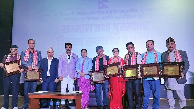 मंगलबार सम्पन्न कार्यक्रममा सञ्चार तथा सूचना प्रविधिमन्त्री रेखा शर्माले कलाकार मदनकृष्ण श्रेष्ठ, पत्रकार तथा निर्देशक विजयरत्न तुलाधर, अभिनेत्री मिथिला शर्मा, निर्देशक दयाराम दाहाल, मुकुन्द किशोर भट्टराई, श्याम सापकोटा, रेखा थापा, दीपाश्री निरौला, मनोज पण्डित, मीनबहादुर भामसँगै चलचित्रकर्मी कल्याण कोष सञ्चालन समितिलाई उक्त पुरस्कार प्रदान गरिन् ।
