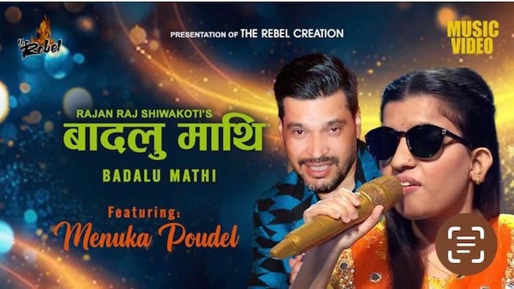 काठमाडौँ। भारतीय रियालिटी शो इन्डियन आइडलको टप ११ मा पुगेर चर्चाको शिखरमा रहेकी गायिका मेनुका पौडेलको स्वरमा ‘बादलुमाथि’ बोलको नयाँ गीत सार्वजनिक भएको छ । गायक राजनराज शिवाकोटी र मेनुका पौडेलको संयुक्त स्वर रहेको उक्त गीत रेबेल क्रिएशनले बजारमा ल्याएको हो ।