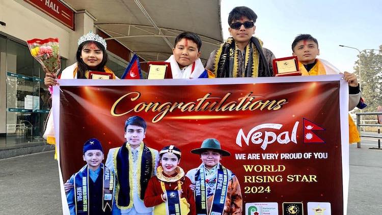 काठमाडौं । जर्जियामा भएको बालबालिकाको प्रतियोगिता ‘वर्ल्ड राइजिङ स्टार २०२४’मा नेपाली प्रतियोगी लोयाङ शेर्पाले शीर्ष उपाधि जितेका छन् । कपनको त्रिज्योति स्कुलमा कक्षा ७ मा अध्ययनरत लोयाङले ४० देशका बालबालिकालाई पछि पार्दै शीर्ष उपाधि जितेका हुन् । प्रतियोगिताको ट्यालेन्ट राउन्डमा ‘रेशम फिरिरी’ बोलको गीत गाएका उनले विधातर्फ ‘ट्यालेन्ट राउन्ड’को अवार्ड पनि सुरक्षित गरे ।