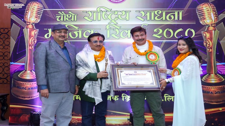 काठमाडौं । राजधानीमा ‘चौथो राष्ट्रिय साधना म्युजिक रिवार्ड २०८०’ सम्पन्न भएको छ । नियमित रुपमा हरेक वर्ष आयोजना गरिदै आएको राष्ट्रिय साधना म्युजिक रिवार्ड नेपालको पहिलो रिवार्ड हो ।