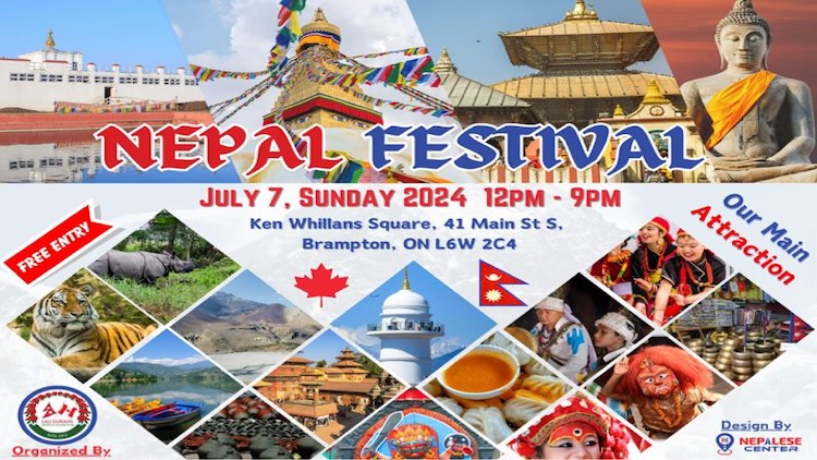 काठमाडौँ । लालीगुराँस स्पोर्ट्स एण्ड कल्चरल क्लबको प्रस्तुतीमा क्यानडाको ब्राम्पटन सहरको केन विलिएम्स स्क्वाएरमा ‘नेपाल फेस्टिभल २०२४’ हुने भएको छ । शेल्टो मोर्टगेज क्यानडा र लिआम फुड क्यानाडाको मुख्य प्रायोजनमा हुने एक दिने महोत्सवमा नेपाली गीतसङ्गीत, नेपाली भेषभूषा, हस्तकलाका सामग्री, नेपाली खानाका परिकारहरू रहने सांस्कृतिक विभाग प्रमुख जीआर भण्डारीले जानकारी दिए ।