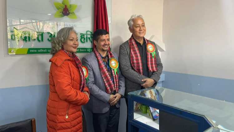काठमाडौं । मेदान्त आयुर्वेद हस्पिटलको उद्घाटन भएको छ । शनिबार काठमाडौंमा आयोजित एक कार्यक्रमकोबीच अभिनेता तथा क्याप्टेन विजय लामा र अभिनेत्री गौरी मल्लले हस्पिटलको उद्घाटन गरेका हुन् । सोही क्रममा अभिनेत्री गौरी मल्लले अहिले खाएर अहिले परिणाम आउने औषधीभन्दा आयुर्वेदिक औषधी राम्रो हुने बताईन् ।