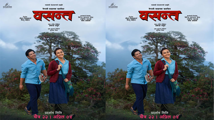 पोस्टरमा कलेज जाँदै गरेका प्रकास र स्वस्तिमालाई देखाइएको छ । पोस्टर सार्वजनिक गर्दै निर्देशक तथा अभिनेता सपुतले लेखेका छन्, ‘जसरी प्रकृतिका विभिन्न रंङहरु समेटेर वसन्त ऋतु आएको छ । त्यसरी नै समाजका विभिन्न रङहरु समेटेर सिनेमा ‘वसन्त’ तयार भएको छ । ती रंङहरु मध्ये सबै भन्दा सुन्दर रङ हो प्रेमको रङ । ‘वसन्त’ एउटा सुन्दर प्रेमको रङले बनेको छ । बसन्त ऋतुमा फुल्ने लालीगुँरास जस्तै रंगीन पर्व फागु पर्वको शुभकामना ।’