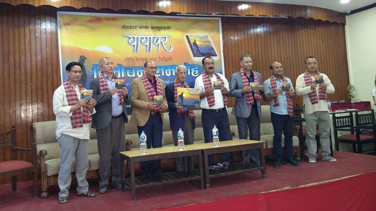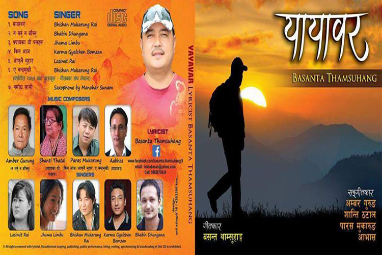 काठमाडौं । इलामे गीतकार बसन्त थाम्सुहाङको दोस्रो सांगीतिक एल्बम ‘यायावर’ सार्वजनिक भएको छ । गीतकार संघ नेपालले राजधानीमा आइतबार आयोजना गरेको कार्यक्रममा गीतकार रत्नशमशेर थापा, गीतकार संघका अध्यक्ष चुडामणि देवकोटा, संगीतकार इश्वर बल्लभ, प्राज्ञ तथा साहित्यकार श्रवण मुकारुङ, संगीतकार आभाष, गीतकार योगेन्द्रमणि दाहाल, गीतकार दिनेश अधिकारी र गीतकार थाम्सुहाङले संयुक्त रुपमा एल्बम सार्वजनिक गरे ।