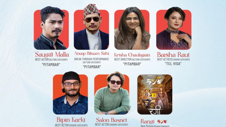 त्यस्तै ड्रामा विधामार्फत फिल्म ‘तेल भिसा’बाट अभिनेता विपिन कार्की छनोट भएका छन् भने अभिनेत्री वर्षा राउत बेस्ट एक्ट्रेसमा नोमिनेसनमा परेकी छन्। ‘रंगी’बाट सलोन बस्नेत बेस्ट एक्टरमा नोमिनेसनमा परेका छन् यसै फिल्ममार्फत ड्रामा विधामा उत्कृष्ट फिल्मको नोमिनेसनमा परेको छ।