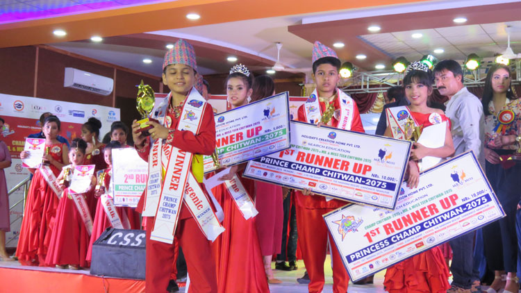 चितवन । चितवनमा भएको ‘च्याम्प चितवन २०७५ को उपाधि सेलिसा आचार्य र अभियान पौडेलले जितेका छन् । गैडाकोटको नारायणी नदी किनारमा रहेको होटल नारायणी रिर्साेर्टमा फाईनलमा उत्कृष्ट प्रस्तुति दिदै बालिकातर्फ आचार्य र बालकतर्फ पौडेलले उपाधि हात पारेका हुन् । उनीहरुले उपाधिसँगै १५–१५ हजार रुपैयाँ, साईकल, ट्रफ्रि र प्रमाणपत्र फस्ट मिस गुनिभर्स नेपाल २०१७ नग्मा श्रेष्ठ, कलाकार रिद्धिचरण श्रेष्ठ, सिनियर फोटोग्राफर राजभाई सुवाल, फिल्म निर्माता दिपक खाँडसहित प्रतियोगिताकी सञ्चालक लक्ष्मी पन्तले प्रदान गरेका थिए । प्रतियोगिताको बालिका तर्फको फष्ट रनर अफमा आयुषा काफ्ले र सेकेण्ड रनर अफमा अर्यानका केसी घोषित भएका थिए । बालक तर्फ फष्ट रनर अफमा आर्यन पोख्रेरल र सेकेण्ड रनर अफमा संयोग शर्मा घोषित भएका थिए ।