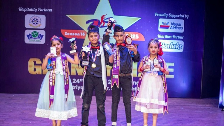 काठमाडौं । परिवर्तन इभेन्ट हाउस प्रालिको आयोजनामा राष्ट्रिय नाचघर जमलमा ‘डि एस ए स्टार २०२५ सिजन–१७’को फिनालेमा विधागत रुपमा बालबालिकाहरु विजेता बनेका छन् । प्रतियोगितामा ‘मिनी डान्सिङ स्टार’ तर्फ म्यारी तामाङ विजेता बन्दा शितल तामाङ ‘फस्ट रनरअप’, ग्रेसिका अधिकारी ‘सेकेण्ड रनरअप’, एमिया अधिकारी ‘थर्ड रनरअप’, योजिना पुन मगर ‘फोर्थ रनरअप’ र आहाना भट्ट ‘फिफ्थ रनरअप’ भए ।