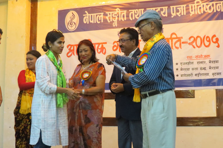 सृजनशिल हातहरु बागेश्वरी, संगीतालय बुटबल र भैरहवा कलाकेन्द्रको सहकार्यमा सम्पन्न सो साँगीतिक कार्यक्रम करिब तीन घन्टा गीतसंगीतमय भयो । भैरहवाका दर्शकले सुगम आधुनिक देखि आफ्नै विभिन्न भाषा भाषिका गीतबाट मनोरञ्जन लिए । राष्ट्रिय स्तरका कलाकारद्धारा प्रस्तुत गरिएका चर्चित गीतमा दर्शकहरु नाच्नसमेत पछि परेनन् । नेपाल संगीत तथा नाटय प्रज्ञा प्रतिष्ठानका उपकुलपति शम्भुजीत बासकोटाको आध्यक्षतामा भैरहवामा शुक्रबारसम्पन्न सो आधुनिक गायन कार्यक्रममा तीन घन्टासम्म दर्शकले आधुनिक गीत, स्थानीय भाषाभाषीका गीतबाट मनोरञ्जन लिए ।