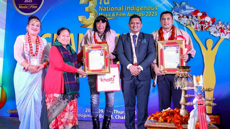 काठमाडौं । चलचित्र र गीत संगीतको विभिन्न ३२ विधामा अवार्ड प्रदान गर्दै तेस्रो राष्ट्रिय आदिवासी संगीत एवम् चलचित्र अवार्ड २०८२ काठमाडौँमा सम्पन्न भएको छ । चलचित्र विकास बोर्डका अध्यक्ष दिनेश डिसीको उद्घाटनसँगै अघि बढेको अवार्ड समारोहमा लिम्बु, तामाङ, गुरुङ समुदायका कलाकारहरूले आफ्नो लोक गीत संगीत एवम् नृत्य सो कार्यक्रममा प्रस्तुत गरेका थिए ।