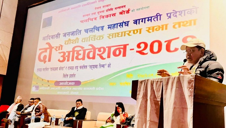 काठमाडौँ । चलचित्र विकास बोर्डको सहकार्यमा आदिवासी जनजाति चलचित्र महासंघ बागमती प्रदेशको चौथो वार्षिक साधारणसभा तथा दोस्रो अधिवेशन गत शनिबार काठमाडौँमा सम्पन्न भएको छ। तत्कालीन अध्यक्ष रेशमकुमार श्याउली तामाङको सभापतित्वमा सम्पन्न अधिवेशन नेपाल सरकार सूचना तथा सञ्चार प्रविधि मन्त्रालय तथा चलचित्र विकास बोर्डको सहयोगमा आयोजना गरिएको हो।