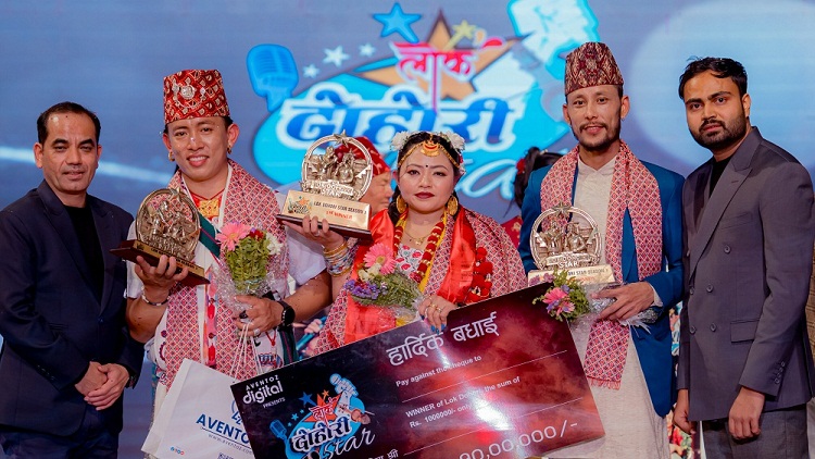 काठमाडौं । नेपाली सांगीतिक रियालिटी शो ‘लोक दोहोरी स्टार सिजन १’ को उपाधि निशा लामाले जितेकी छन् । राजधानीमा भएको ग्राण्ड फिनालेमा शीर्ष उपाधि जित्दै उनले १० लाख रुपैंयाँ नगद पुरस्कार पाइन् । शोमा मानव रावत क्षेत्री दोस्रो र लिलबहादुर गुरुङ तेस्रो बने । फिनालेमा टप ८ फाइनलिस्टहरूले मञ्चमा उत्कृष्ट प्रस्तुति दिएका थिए।
