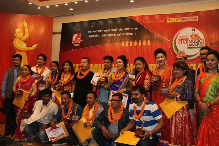 अवार्डमा तीज दोहोरी गीत मिक्सिङ, उत्कृष्ट तीज गीत एरेञ्जर, उत्कृष्ट तीज दोहोरी गीत एरेञ्जर, उत्कृष्ट तीज गीत मिक्सिङ, उत्कृष्ट तीज दोहोरी नव–गायक, उत्कृष्ट तीज दोहोरी नव–गायिका, उत्कृष्ट तीज गीत नव–गायिका, उत्कृष्ट तीज दोहोरी गीत मोडल (पुरुष), उत्कृष्ट तीज दोहोरी गीत मोडल (महिला), उत्कृष्ट तीज गीत मोडल, उत्कृष्ट तीज गीत छायाँकार, उत्कृष्ट तीज गीत सम्पादक, उत्कृष्ट तीज गीत युगल मोडल, उत्कृष्ट तीज गीत नृत्य निर्देशक, उत्कृष्ट तीज दोहोरी गीत भिडियो निर्देशक छन् ।