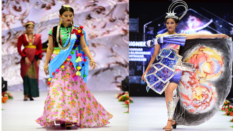 काठमाडौं । नमूना कलेज अफ फेसन टेक्नोलोजीमा अध्ययनरत विद्यार्थीहरुले गत आइतबार राजधानीको होटल सोल्टी क्राउन प्लाजामा ‘अभूतपूर्व परिकल्पना’ शीर्षकमा आफ्ना डिजाइन प्रस्तुत गरेका छन् । परिकल्पना शीर्षकअन्तर्गतका २१ वटा पहिरनहरूमा विद्यार्थी डिजाइनरहरूले पहिरन प्रस्तुत गरेका थिए ।