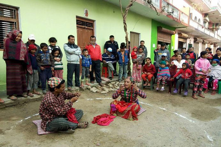 काठमाडौं । २१ मंसिरमा हुन गइरहेको दोस्रो चरणको निर्वाचनका लागि ४५ जिल्लामा पुगेका २२ नाट्य टोलीले सडक नाटक ‘महादान’ सोमबार प्रदर्शन समापन गरेका छन् । निर्वाचन आयोगको आयोजना, सांँस्कृतिक संस्थानको संयोजन र आरोहण गुरुकुलको सहकार्यमा प्रस्तुत हुँदै आएको यो नाटक मार्फत कलाकारहरुले सम्बन्धित क्षेत्रमा निर्वाचन कसरी गर्ने, आफ्नो मतको सदुपयोग कसरी हुन्छ, निर्वाचन कसका लागि लगायतका बिषयमा महादान मार्फत जनचेतना फैल्याए ।