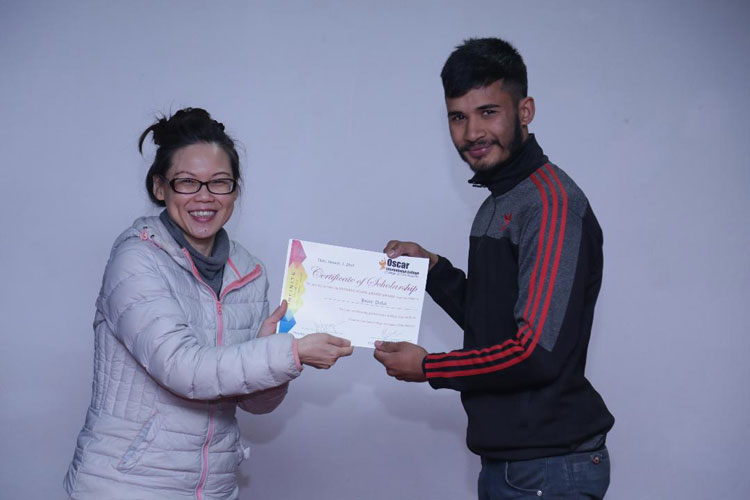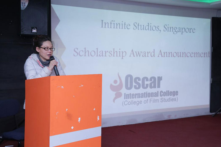 काठमाडौं । नेपालको पहिलो फिल्म कलेज ओस्कार इन्टरनेसनल फिल्म कलेजमा अध्ययनरत पाँच विद्यार्थीले सिंगापुरको इन्फिनिटी स्टुडियोको छात्रवृत्ति पाउने भएका छन् । स्टुडियोले बुधबार कलेजमा आयोजना गरेको कार्यक्रममा स्टुडियो प्रतिनिधि स्यु मोले छात्रवृत्ति पाउने विद्यार्थीको नाम घोषणा गरिन् । यो साल निपिल शर्मा, दिवस अम्गाइँ, बबिन दुलाल, आशिष लिम्बू र सन्दीप श्रेष्ठले छात्रवृत्ति पाउने छन् । छात्रवृत्ति वापत उनीहरूले जनही ३५ हजार रुपैंया प्राप्त गर्नेछन् ।