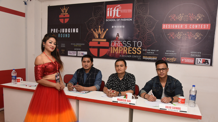 काठमाडौं । बागबजारस्थित इन्टरनेशनल इन्स्टिच्युट अफ फेसन टेक्नोलोजी ‘आईआईएफटी’मा डिजाइनिङ कोर्ष गरिरहेका ६५ जना विद्यार्थीहरु प्रतिस्पर्धामा उत्रँदैछन् । ६ महिनाभन्दा बढी कोर्ष गरेका डिजाइनरका विद्यार्थीहरु ‘ड्रेस टु इम्प्रेस’ शीर्षकमा पहिलोपटक भिड्न लागेका हुन् । यही आउँदो १० बैशाखमा राजधानीमा हुने फाइनल प्रतिस्पर्धाका लागि यतिखेर विद्यार्थीहरु कम्पिटिशनको तयारीमा जुटेका छन् ।
