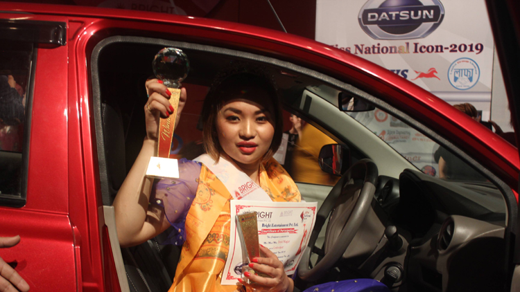 काठमाडौं । ‘मिस नेशनल आइकन–२०१९’को उपाधि देवी मगरले जितेकी छन् । म्याग्दीकी २२ वर्षीया मगरले शीर्ष उपाधिसहित ‘ड्याट्सन कार’ प्राप्त गरेकी छन् । जमलस्थित राष्ट्रिय नाचघरको स्टेजमै शीरमा ताजसहित कार प्राप्त गर्दा उनलाई विश्वास नै लागेन । कार्यक्रम प्रस्तोताले उपाधि जितेको दोहो¥याएपछि खुसीको आँशु खसाल्दै उनले भनिन्, ‘साँच्चीकै मैले जितेको हुँ ।’ आफ्ना १२ प्रतिस्पर्धीलाई पछि पादै स्नातक तेस्रो वर्षमा अध्ययनरत देवी मगरले यस वर्षको ‘मिस नेशनल आइकन’को उपाधि हासिल गरेकी हुन् ।