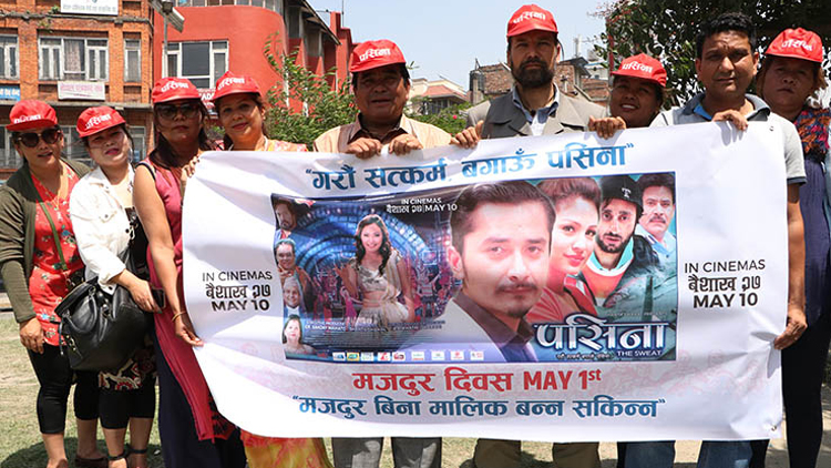 काठमाडौँ । आगामी वैशाख २७ गते शुक्रबारबाट प्रदर्शनमा आउन लागेको फिल्म ‘पसिना’ले मजदुर दिवसको अवसरमा बुधबार र्याली गरेको छ । र्यालीमा फिल्मका एक कलाकार जयनन्द लामा मात्र उपस्थित थिए भने बाँकी प्रमुख कलाकार कोही देखिएनन् । फिल्मका निर्देशक आरबी खत्री शरदले मजदुरको कथालाई फिल्मले बोल्ने भएकोले मजदुर दिवसको अवसरमा र्याली निकालेको बताए ।